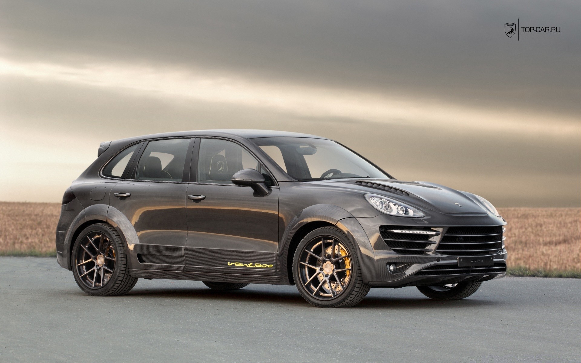 Auto mit Scheinwerfern auf dem Hintergrund der Berge