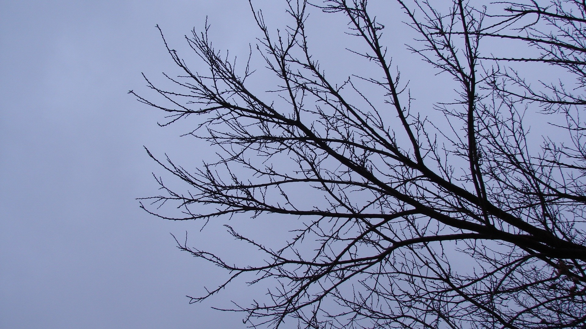 Winterbaum auf dem Hintergrund eines düsteren Himmels