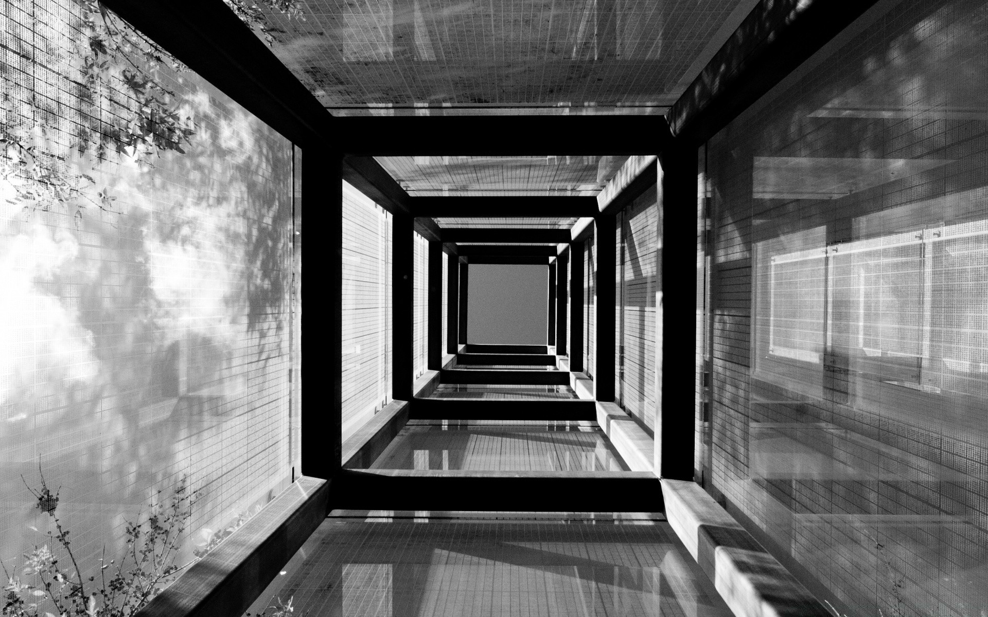 Schwarz-Weiß-Foto eines Mädchens mit Brille