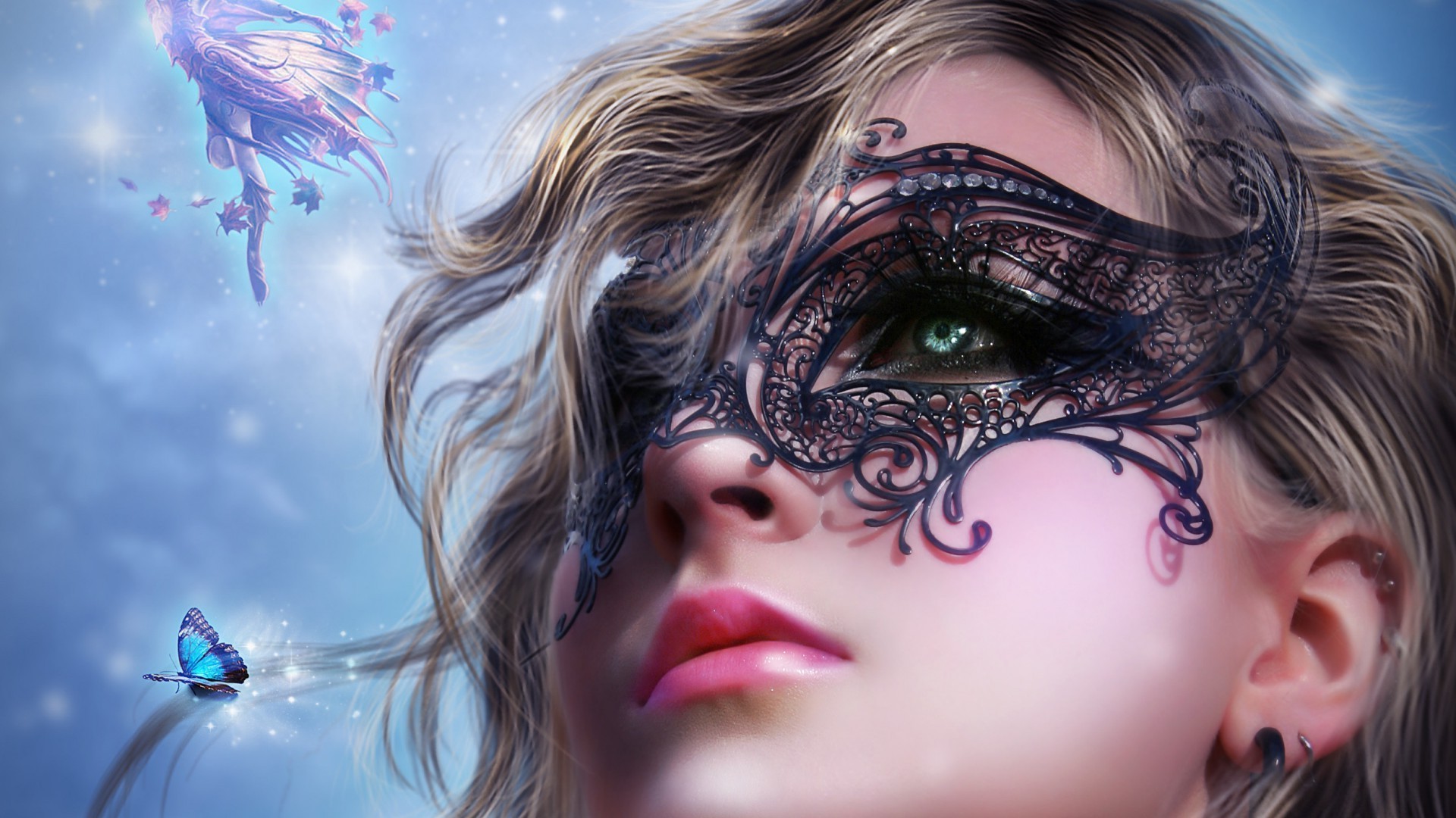 Etwas Geheimnisvolles versteckt sich unter der Maske eines Mädchens