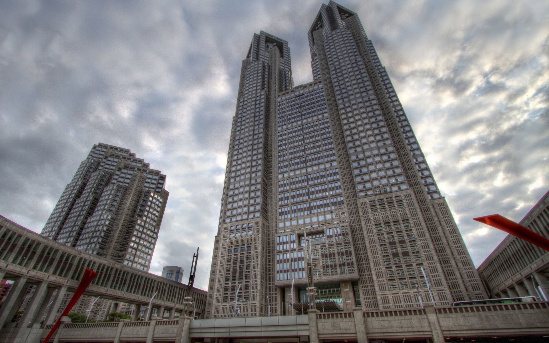 Gogod mit Wolkenkratzern Laterne und Bäume