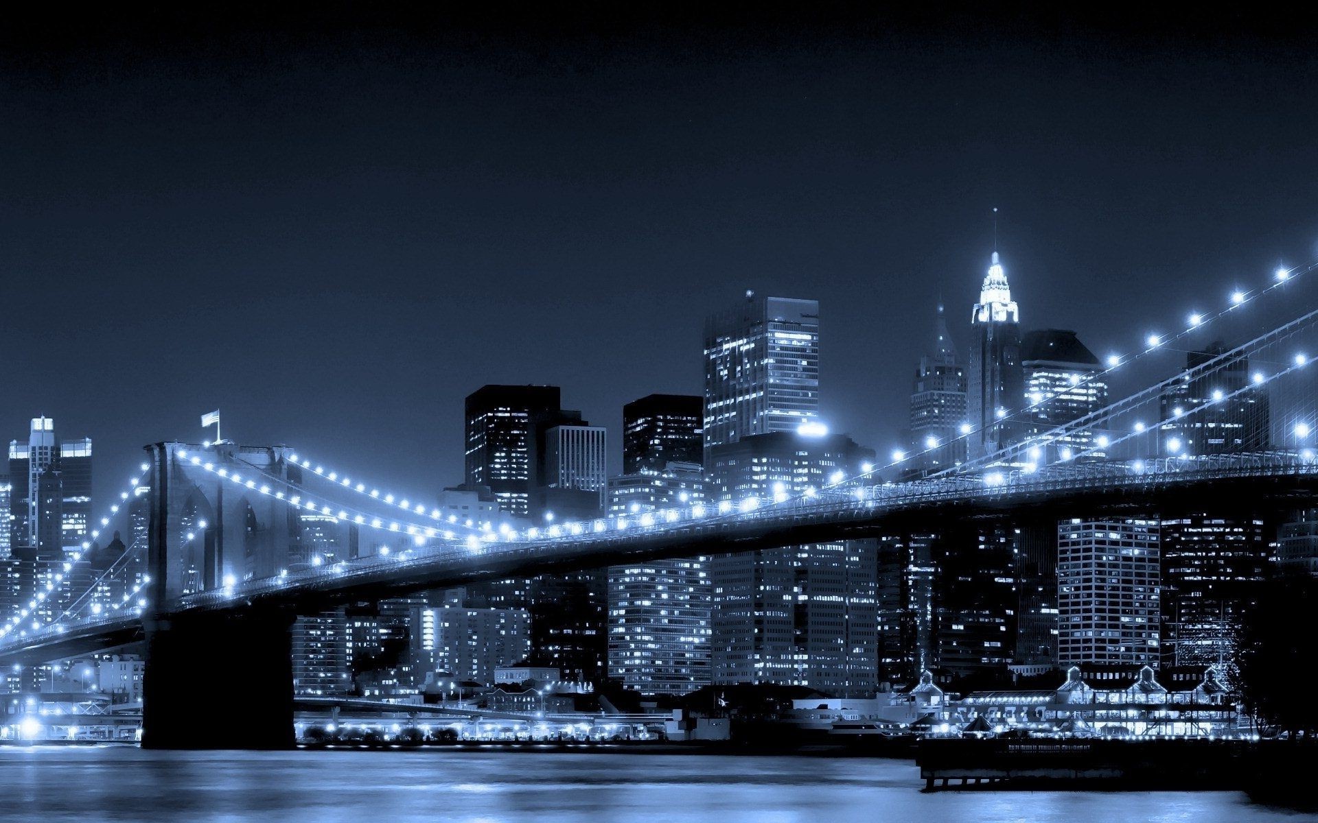 Brücke über den Fluss mit Lichtern aufgehängt