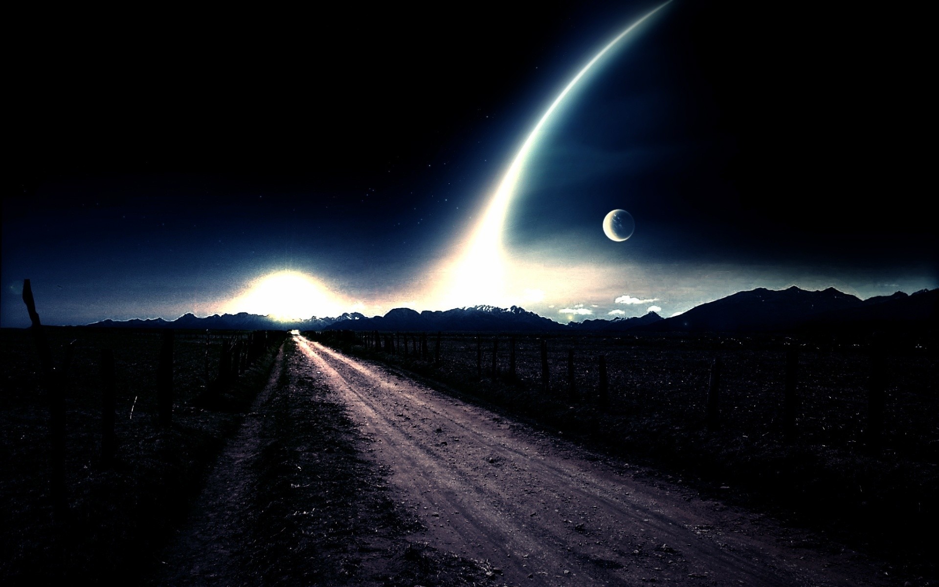 Unnatürlich schöner Sonnenuntergang beim Mond