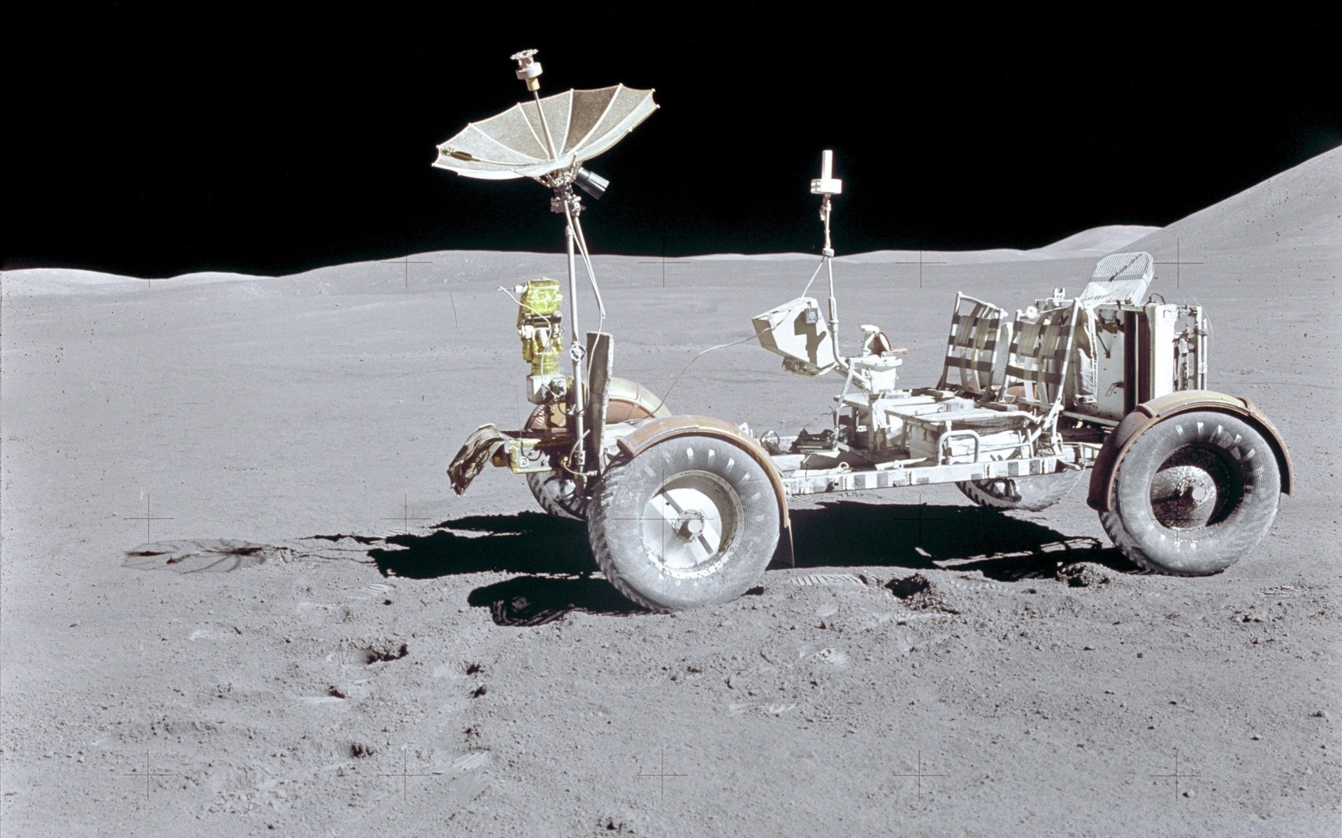 Mondschiff auf dem Mond vor dem Hintergrund des schwarzen Kosmos