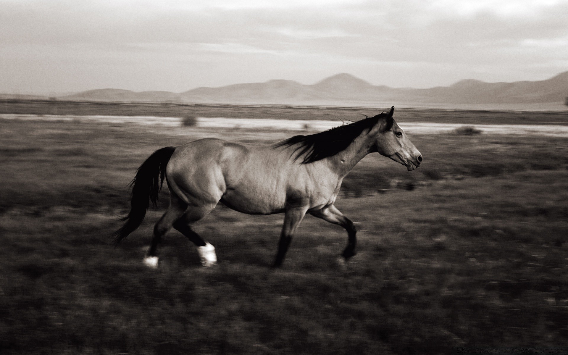 Galoppierendes Pferd bei Nacht Sonnenuntergang