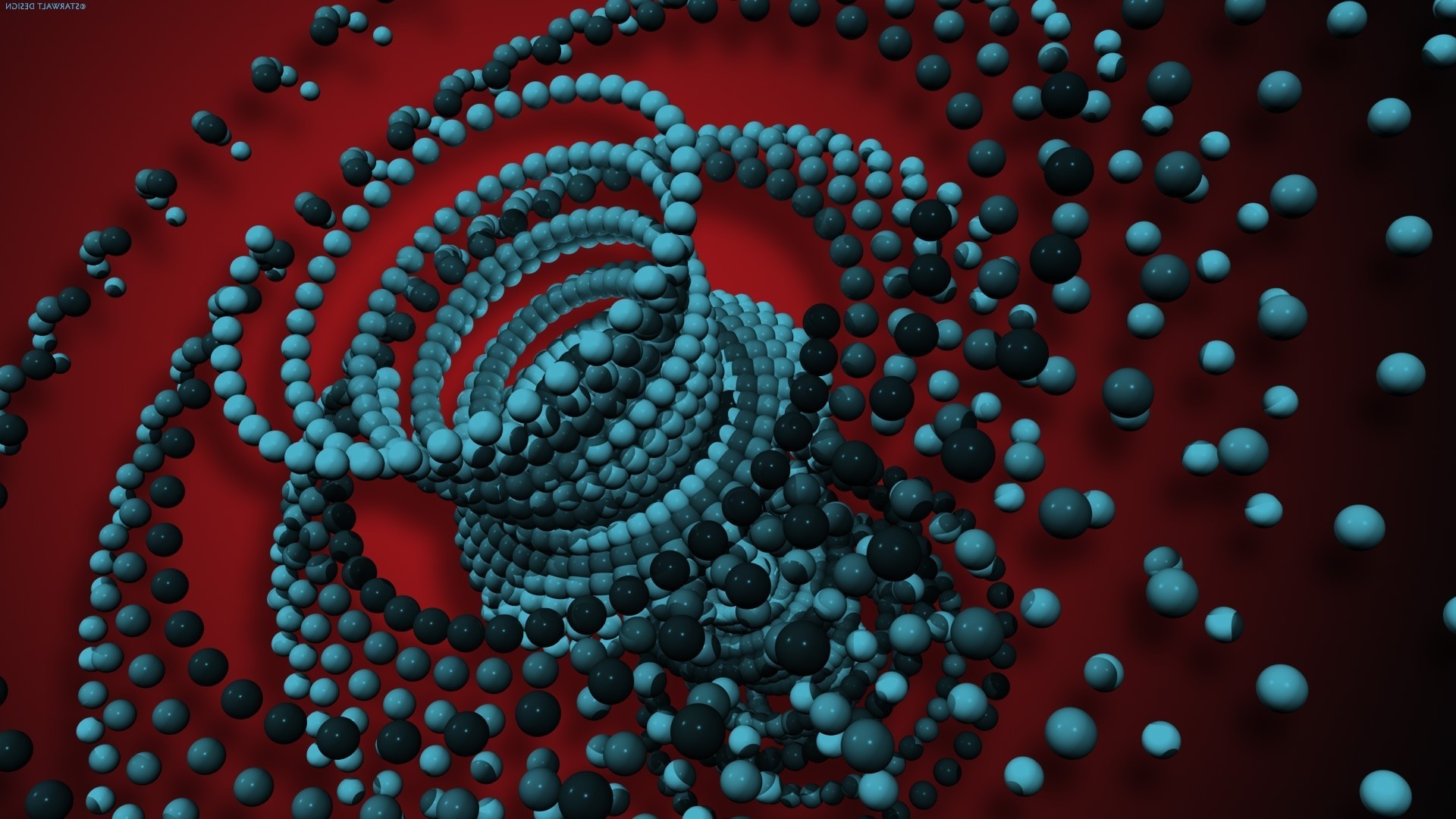 Abstraktion der blauen Kugeln auf rotem Hintergrund