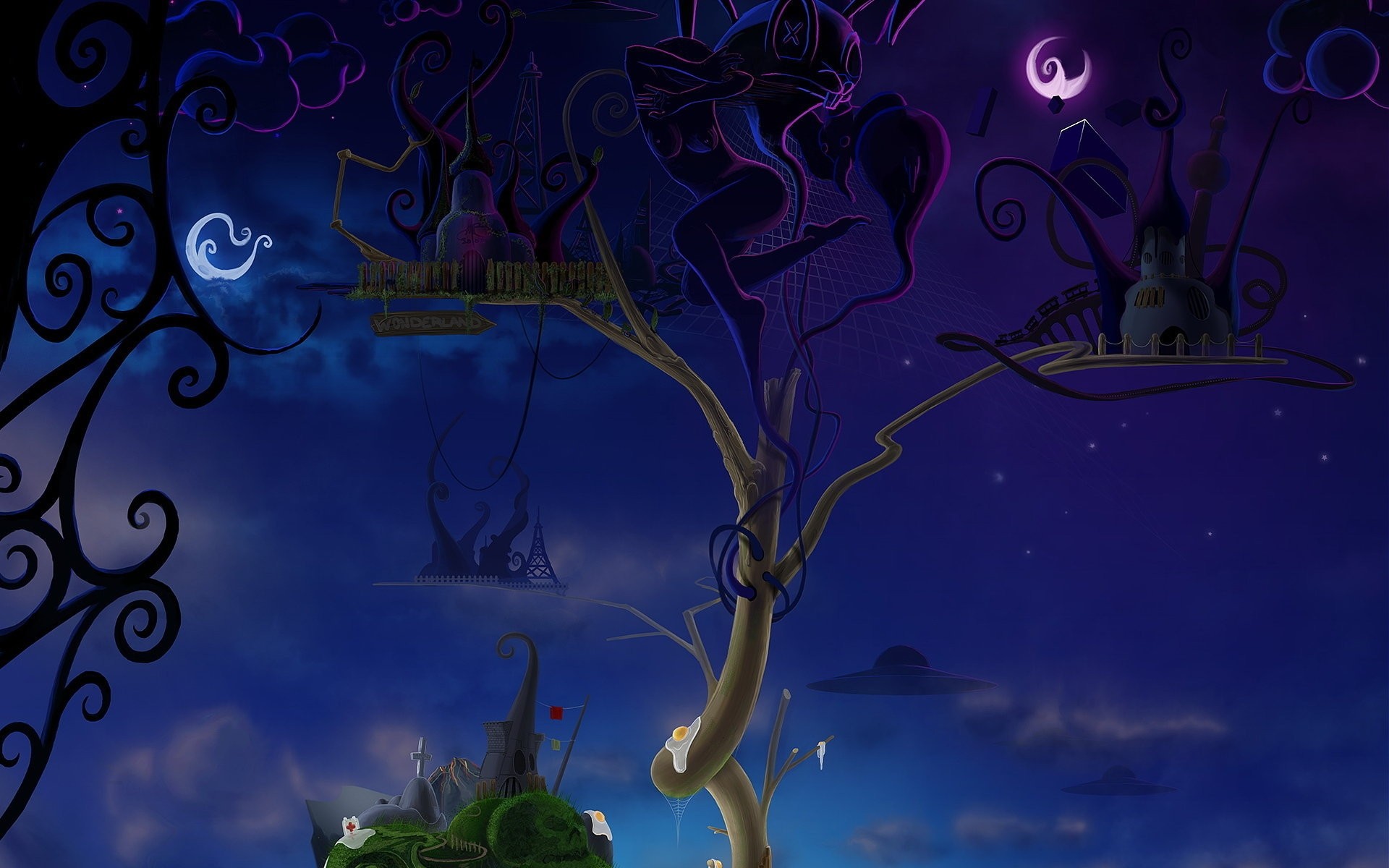 Brennendes Schloss in der Ferne über der Küste in der Nacht