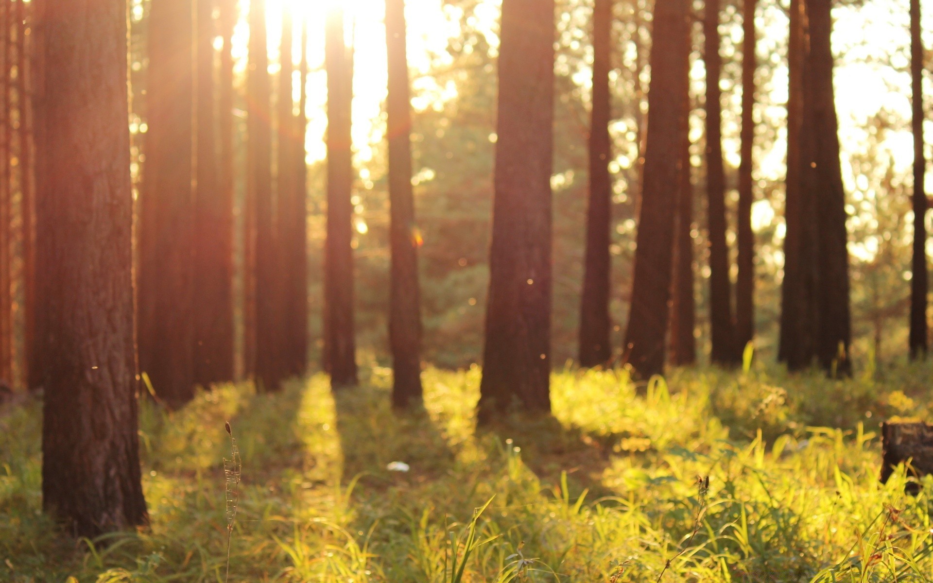 Anmutige kiefern im hintergrund des sonnenuntergangsAnmutige Kiefern im Hintergrund des Sonnenuntergangs