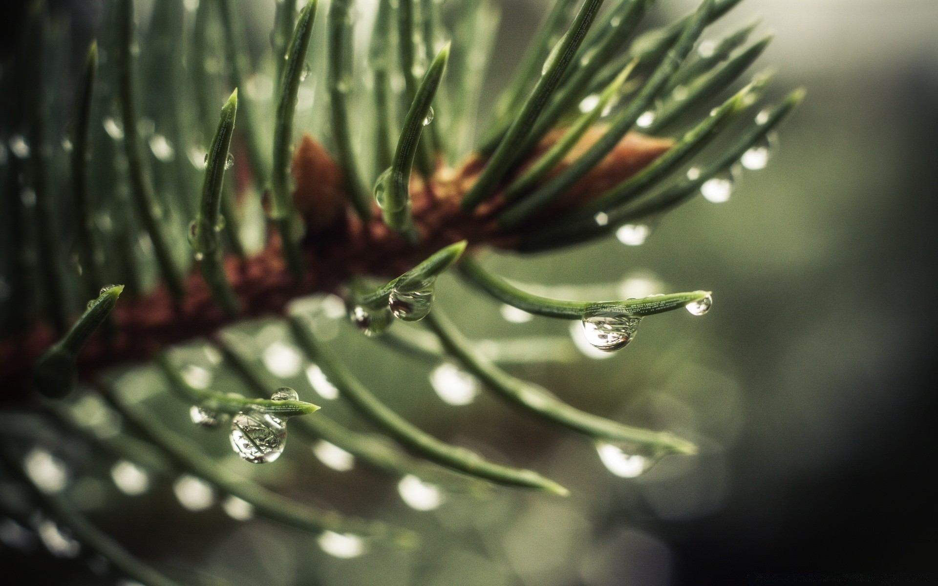 Regentropfen auf Kiefernnadeln