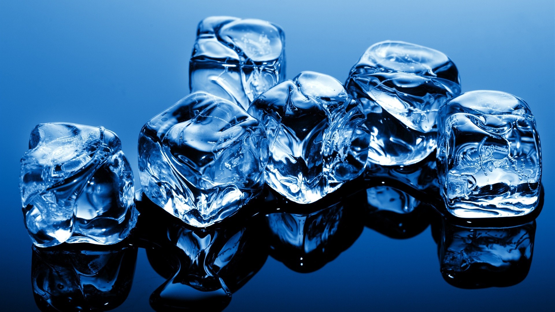 Aufgetaute Eiswürfel auf blauem Hintergrund