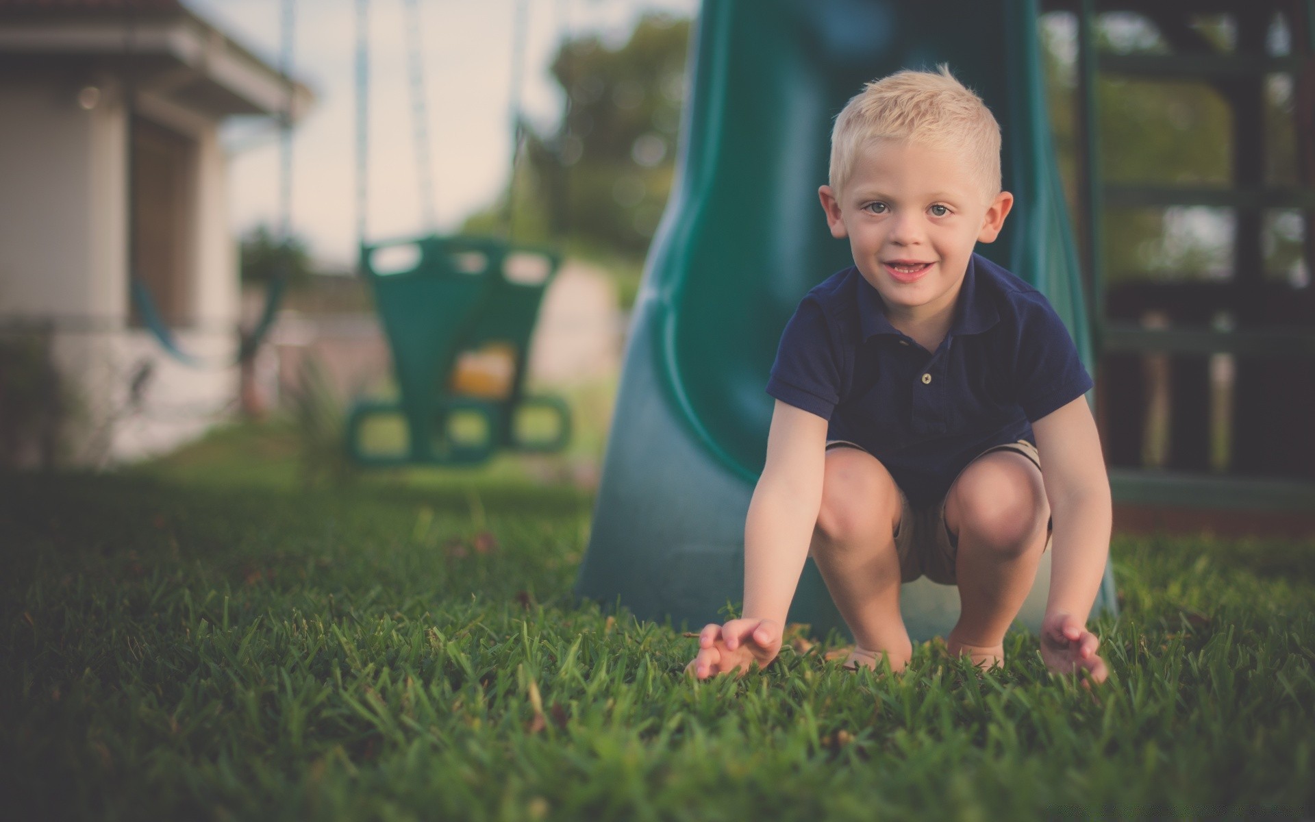 Kind im Garten auf grünem Gras
