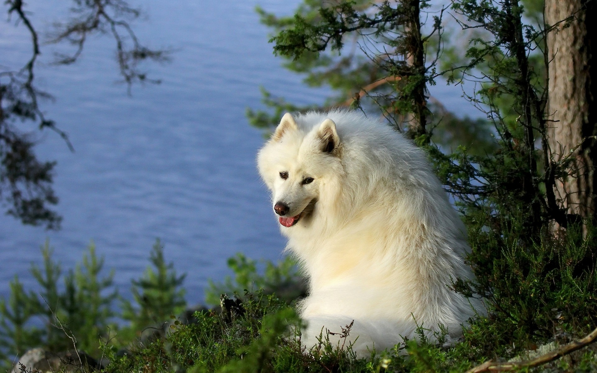 Netter Hund lächelt in der Natur
