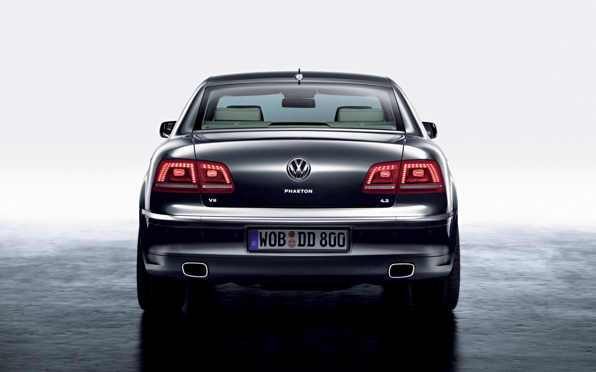 Schwarz und neuer Volkswagen. Kofferraum-Ansicht