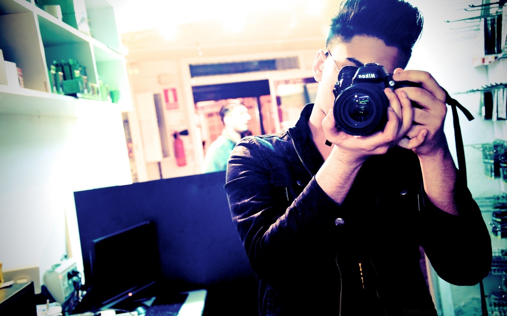 Canon Kameraobjektiv auf gelbem Hintergrund