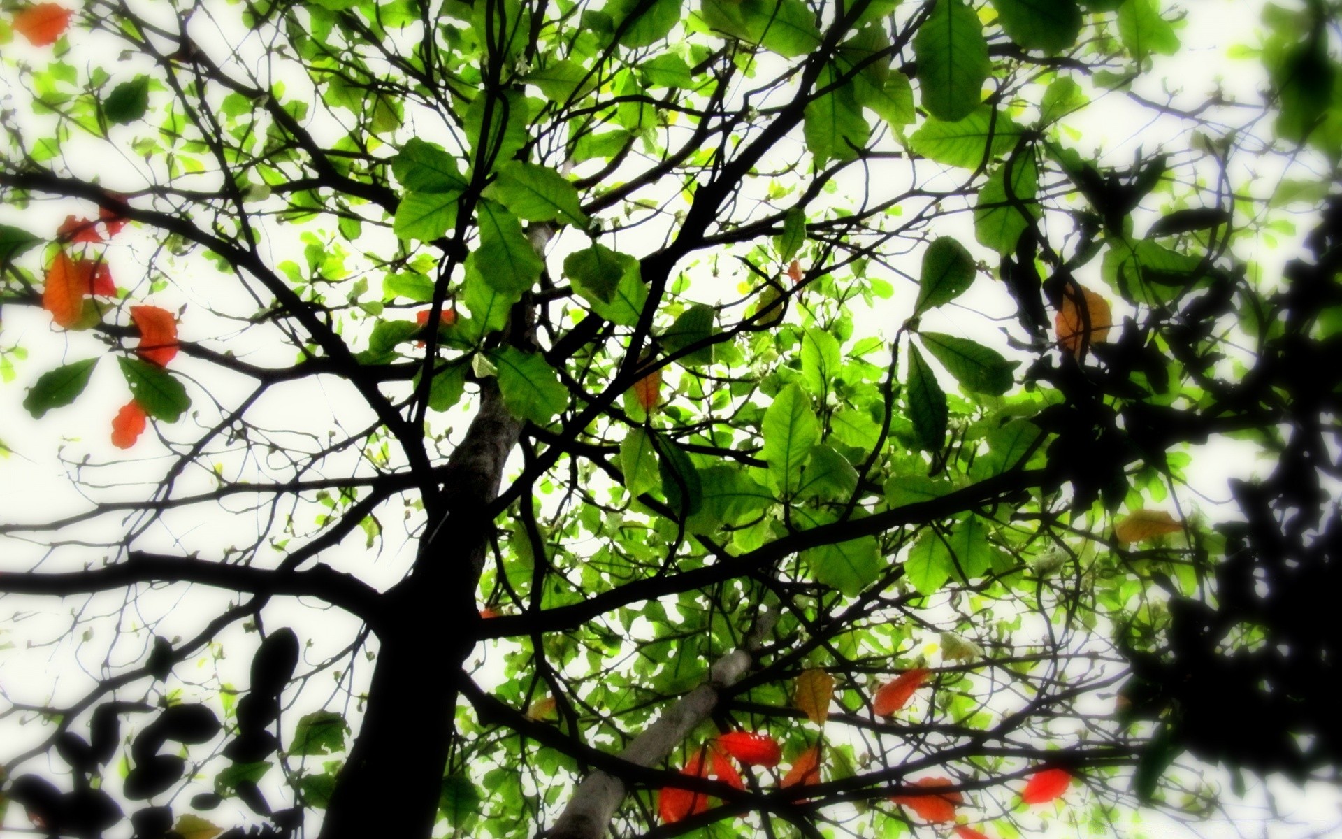 Die grünen Blätter wurden rot gefärbt