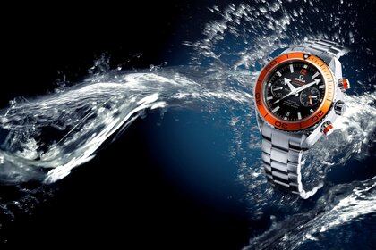 Omega-Uhr auf schwarzem Hintergrund