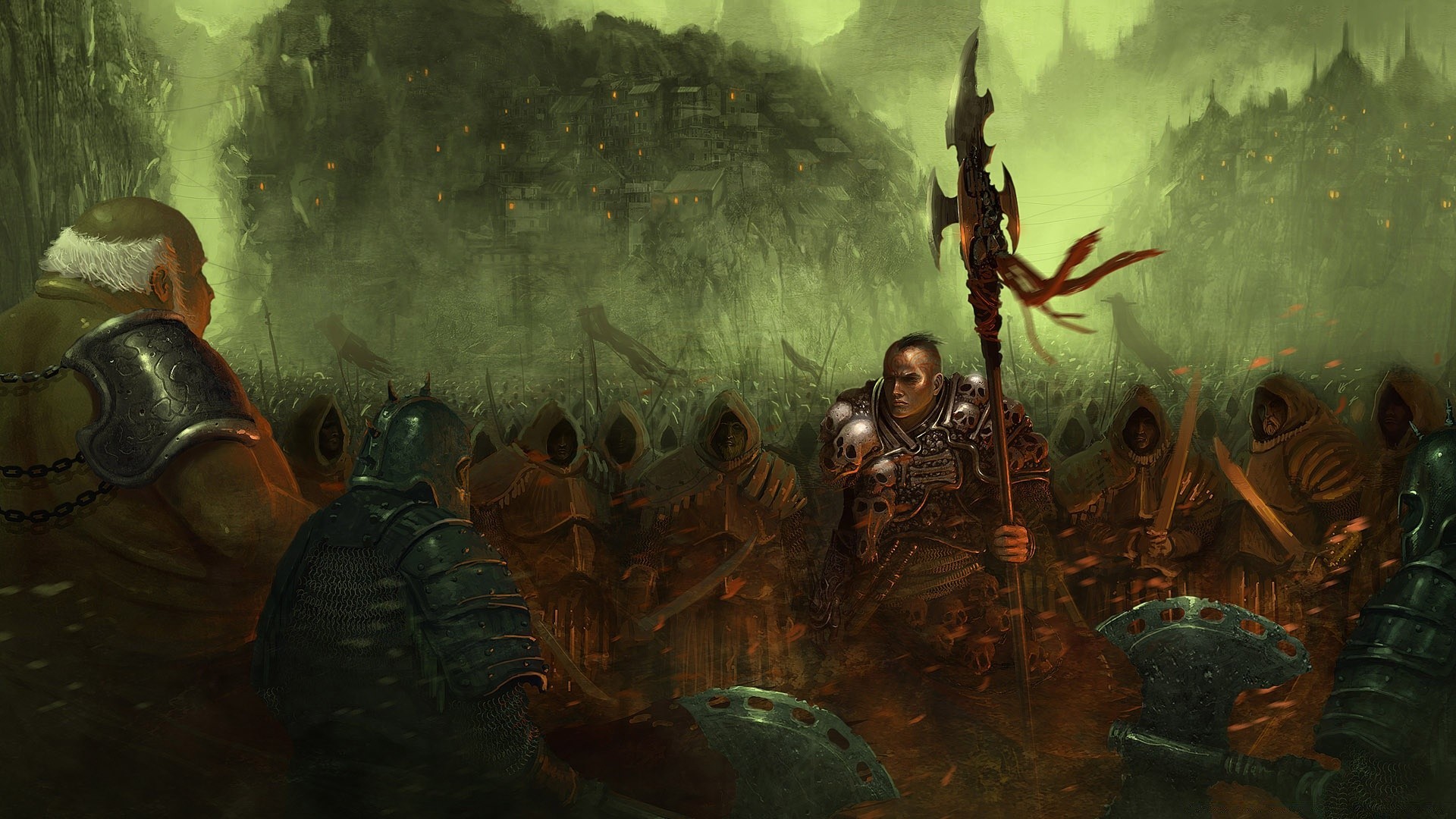 Zwei Soldaten im Kampf mit einem bewaffneten Monster