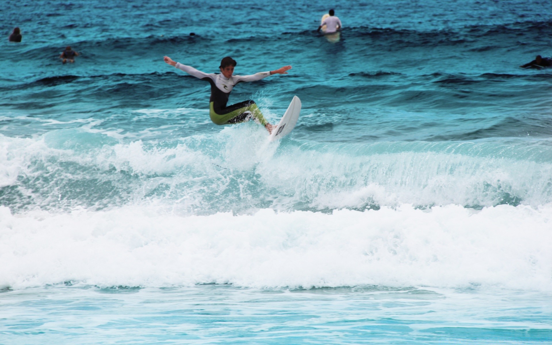 Der blaue unendliche Ozean und der kleine helle Rand des Himmels