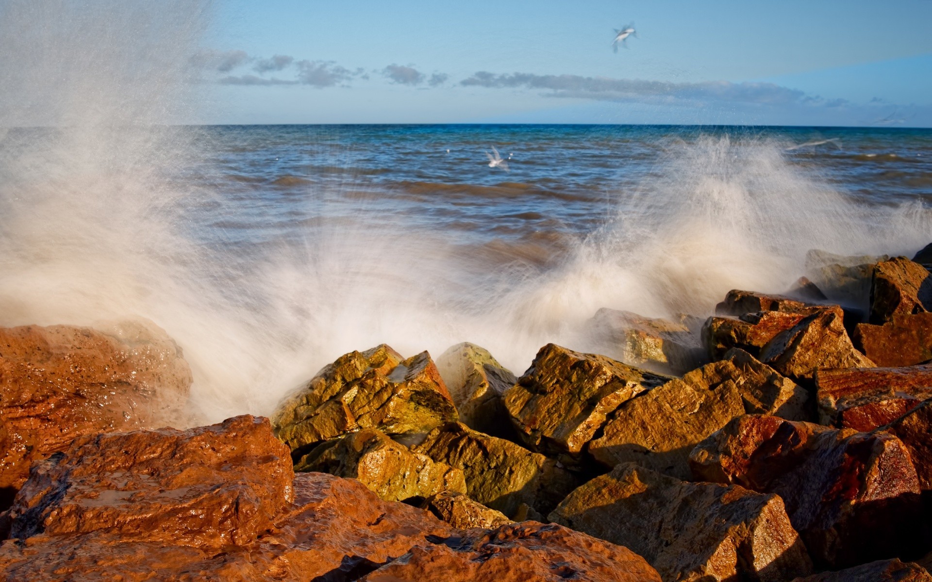 Wellen des Ozeans und ein feuriger Sonnenuntergang