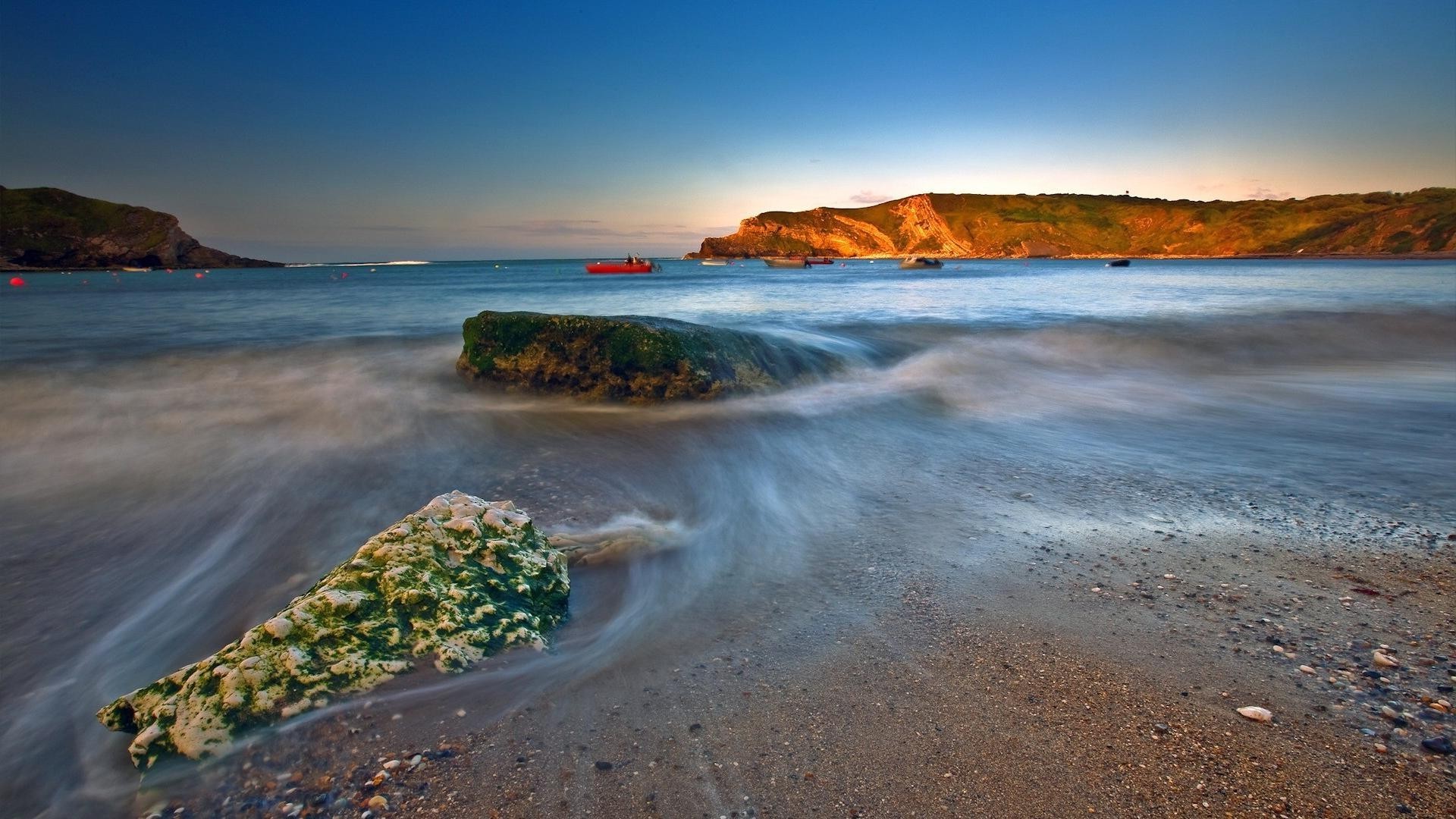 Felsbrocken und steine am sandstrand. schöne landschaftFelsbrocken und Steine am Sandstrand. Schöne Landschaft