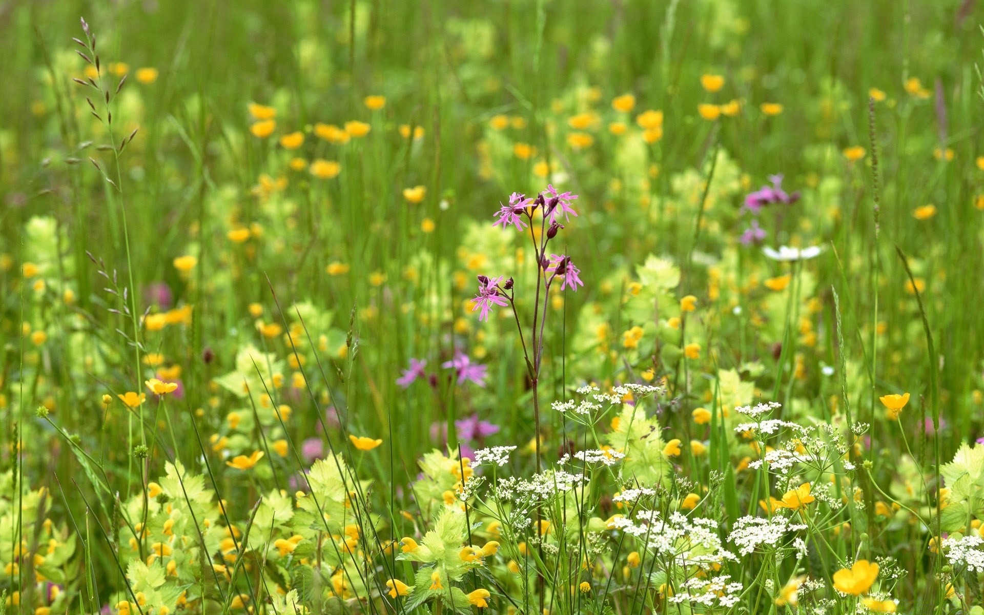 Sängerin, die in einem rosa Kleid in der Natur auf ihren Knien sitzt