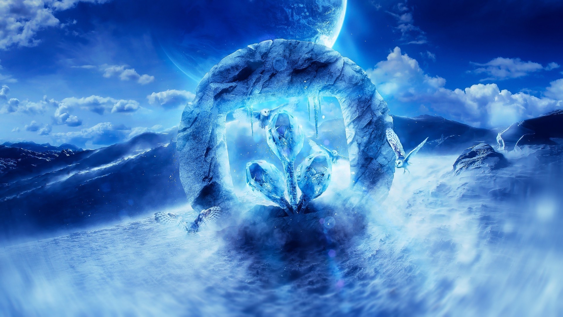 Abstraktion von Wasser und Meer auf dem Hintergrund der Berge