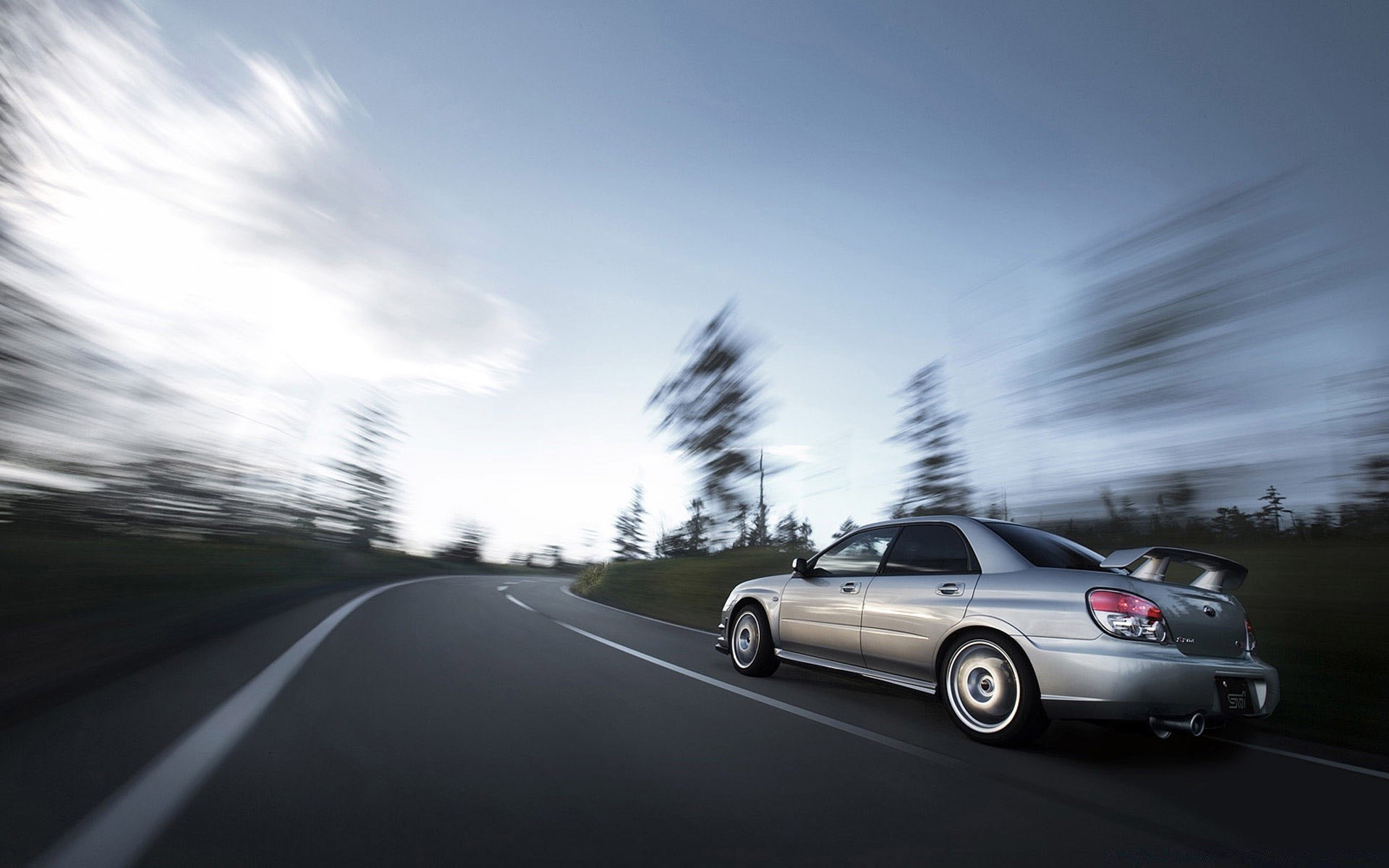 Das Auto bewegt sich mit hoher Geschwindigkeit auf der Straße