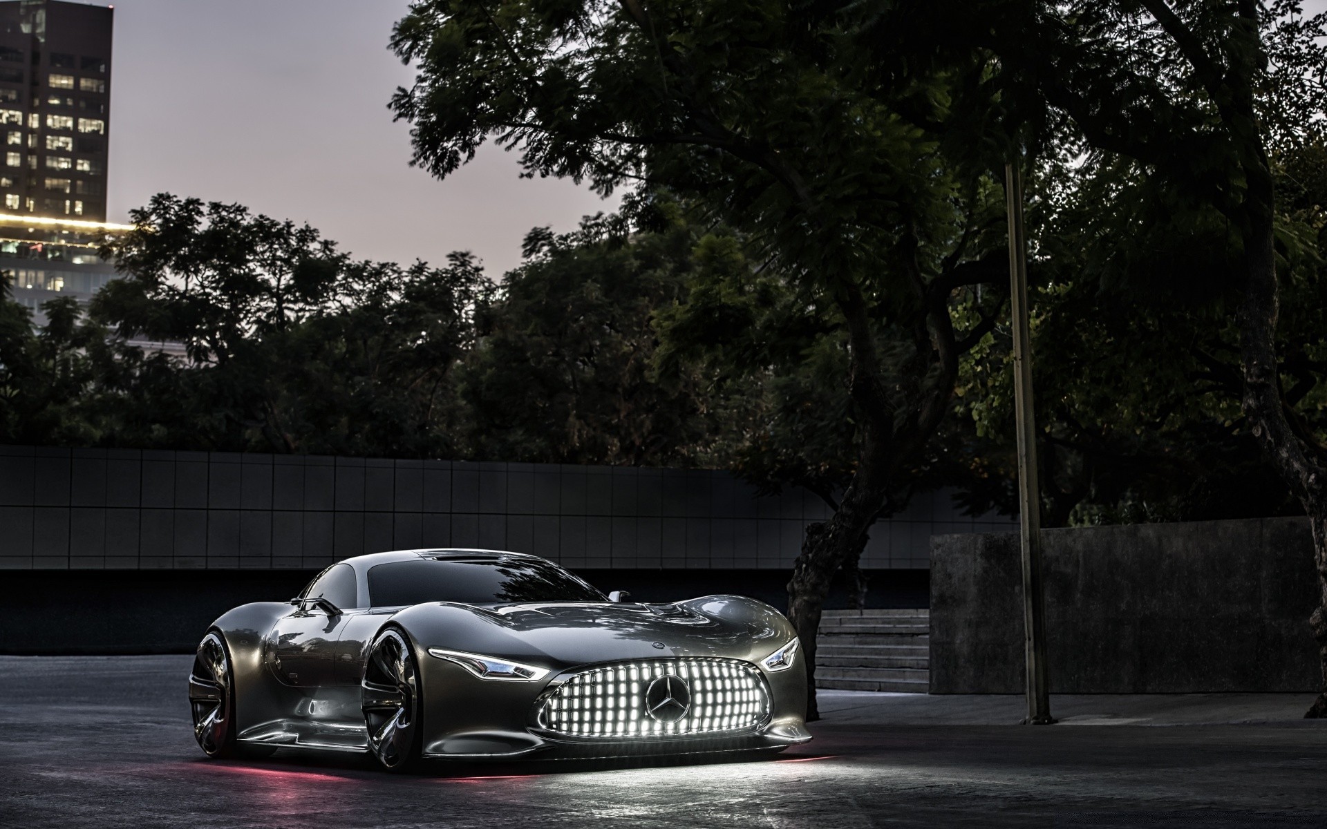 Blaues Cabrio mit Chromscheiben auf einem Berghintergrund