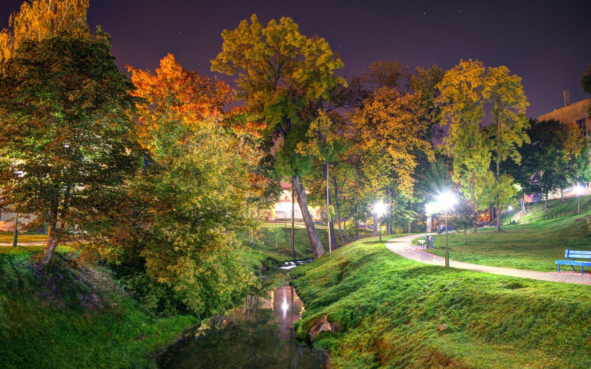 Rosa Sonnenuntergang am Fluss und in der Stadt