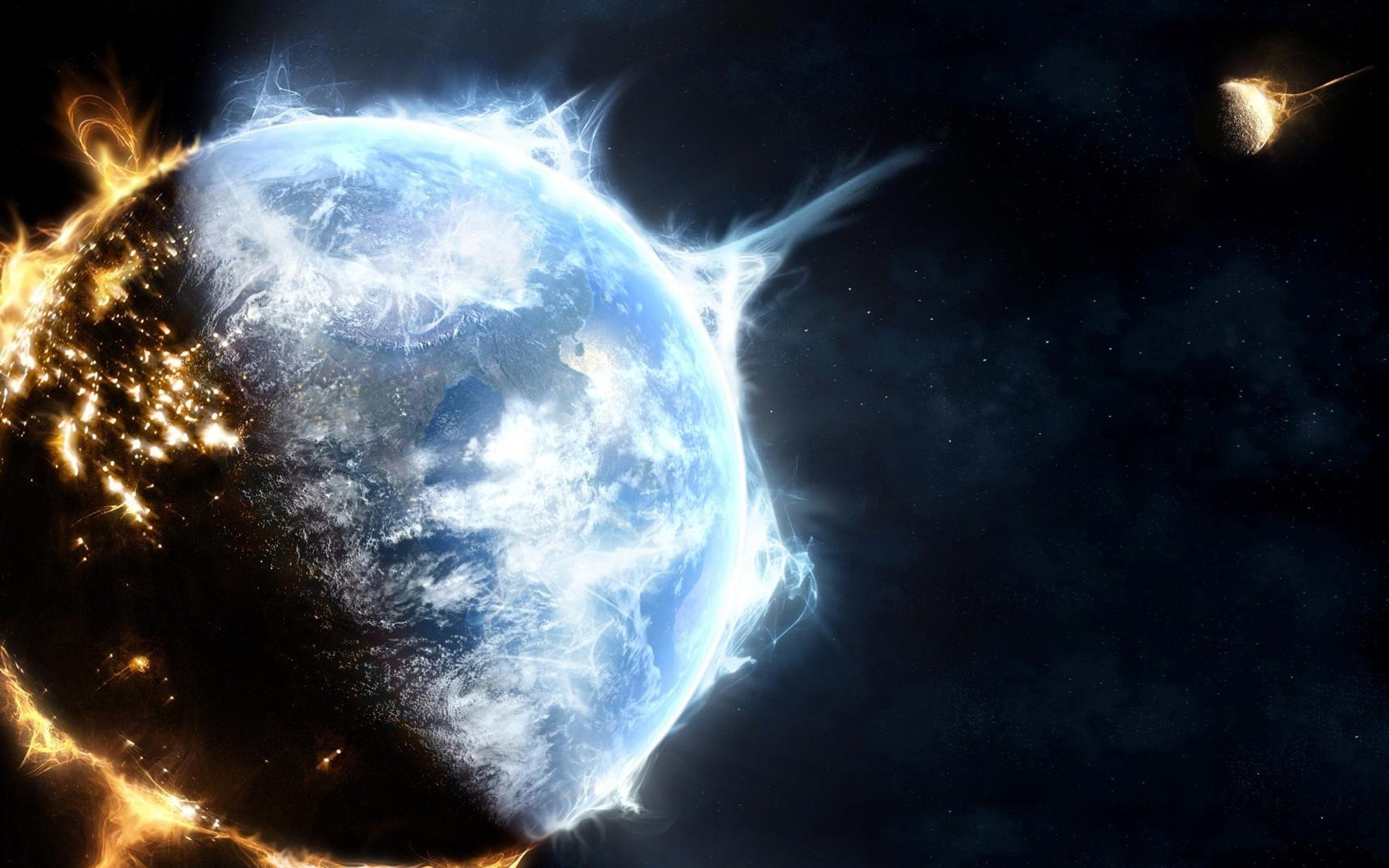 Der planet vor dem hintergrund des hellen schein der sterneDer Planet vor dem Hintergrund des hellen Schein der Sterne