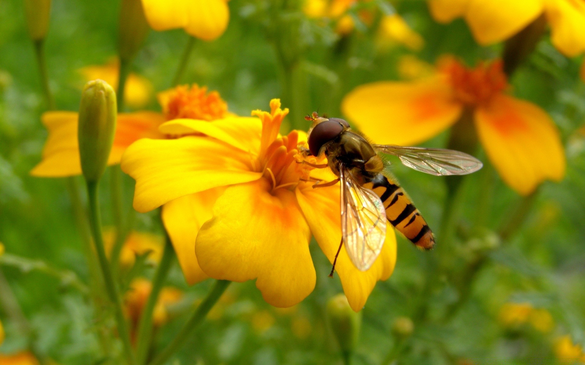 Ein Insekt auf einer Blume und eine sommerliche Natur