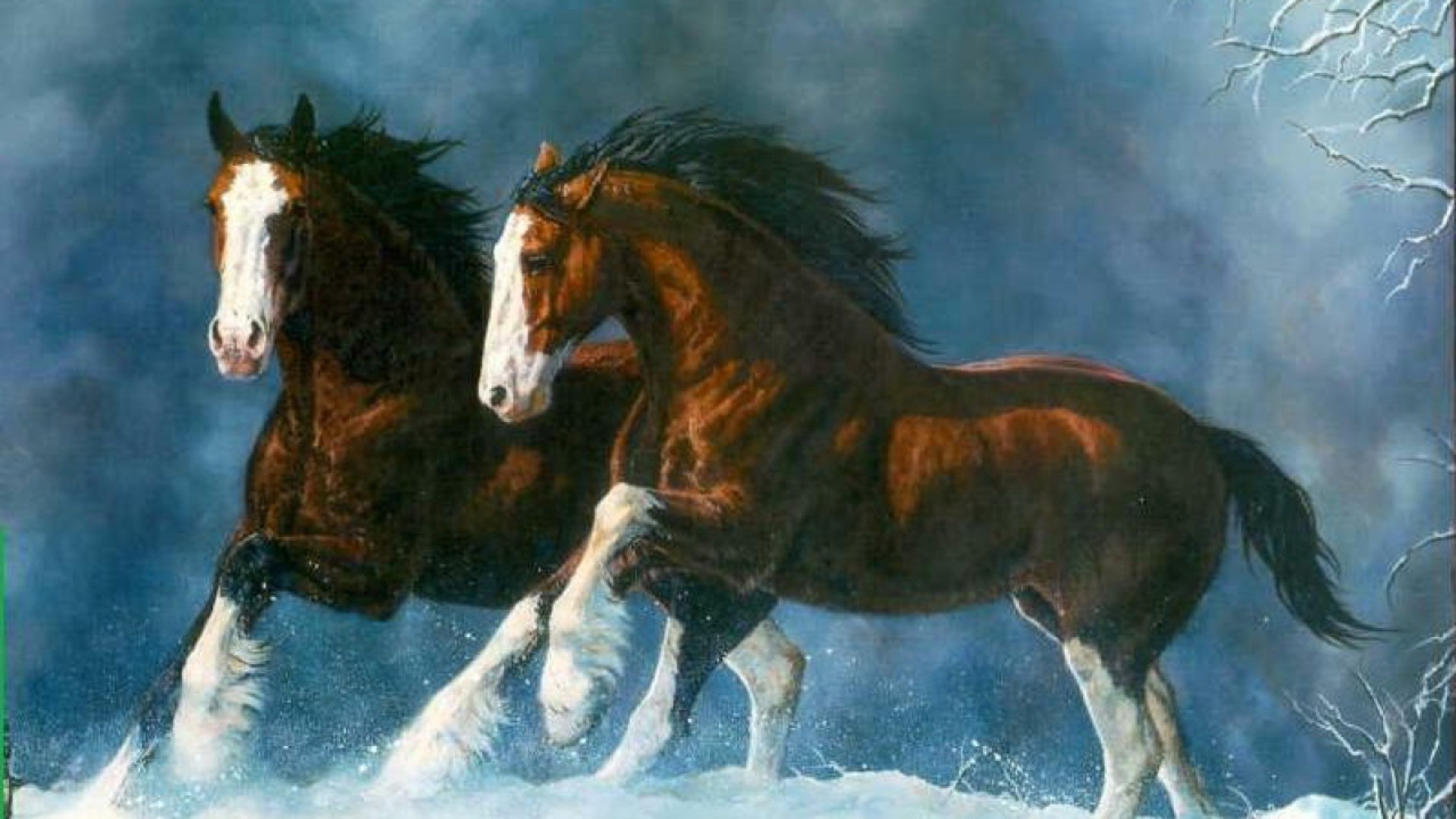 Traber laufen durch den Schnee