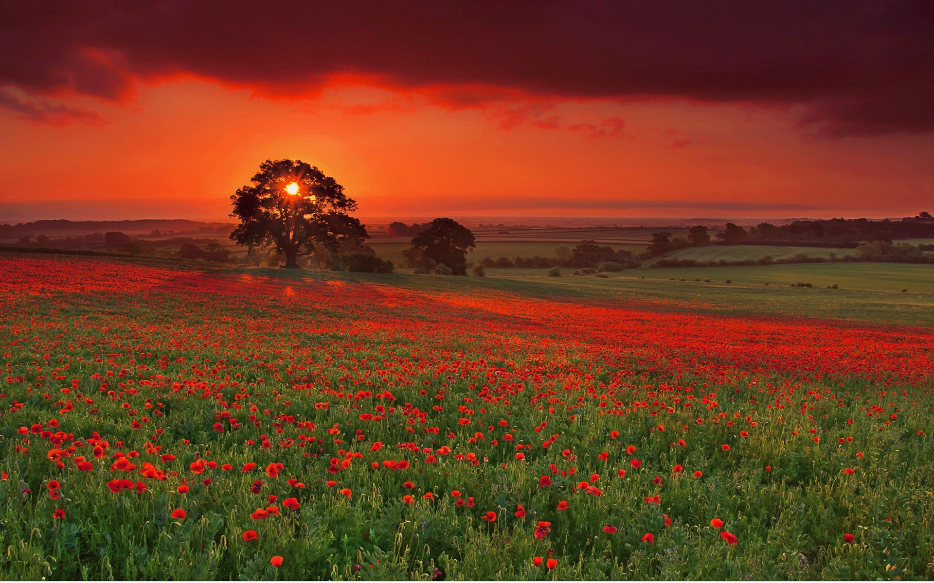 Faszinierende Mohnblumen auf dunklem Hintergrund