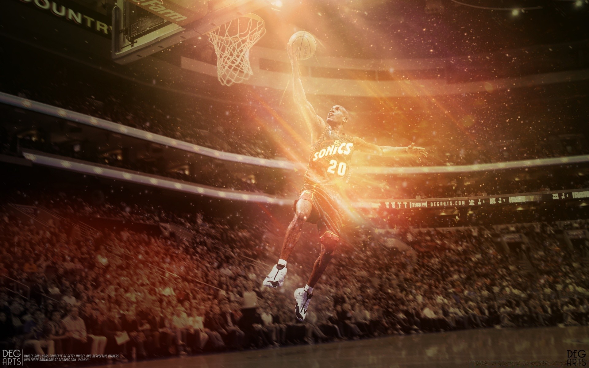Flammendes bild eines basketballspielers im sprungFlammendes Bild eines Basketballspielers im Sprung