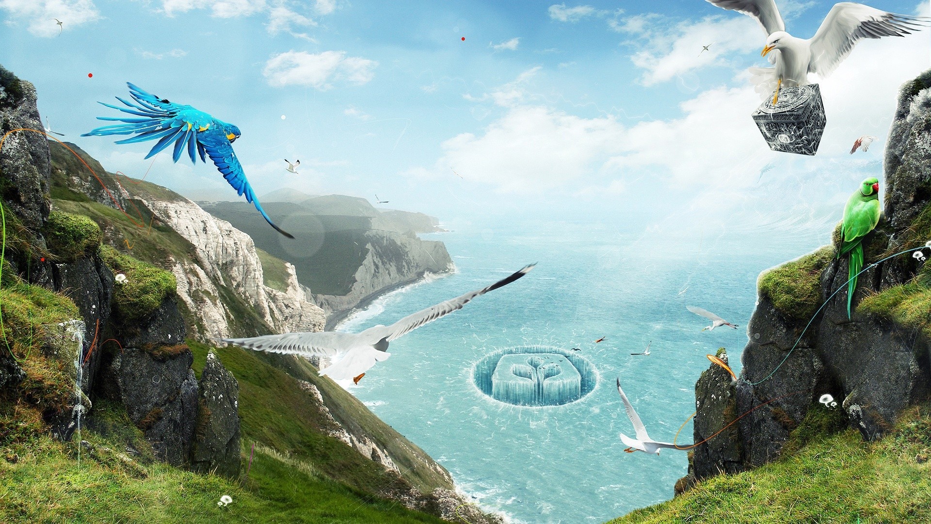 Hinter dem Fluss breitet sich ein grüner Wald aus