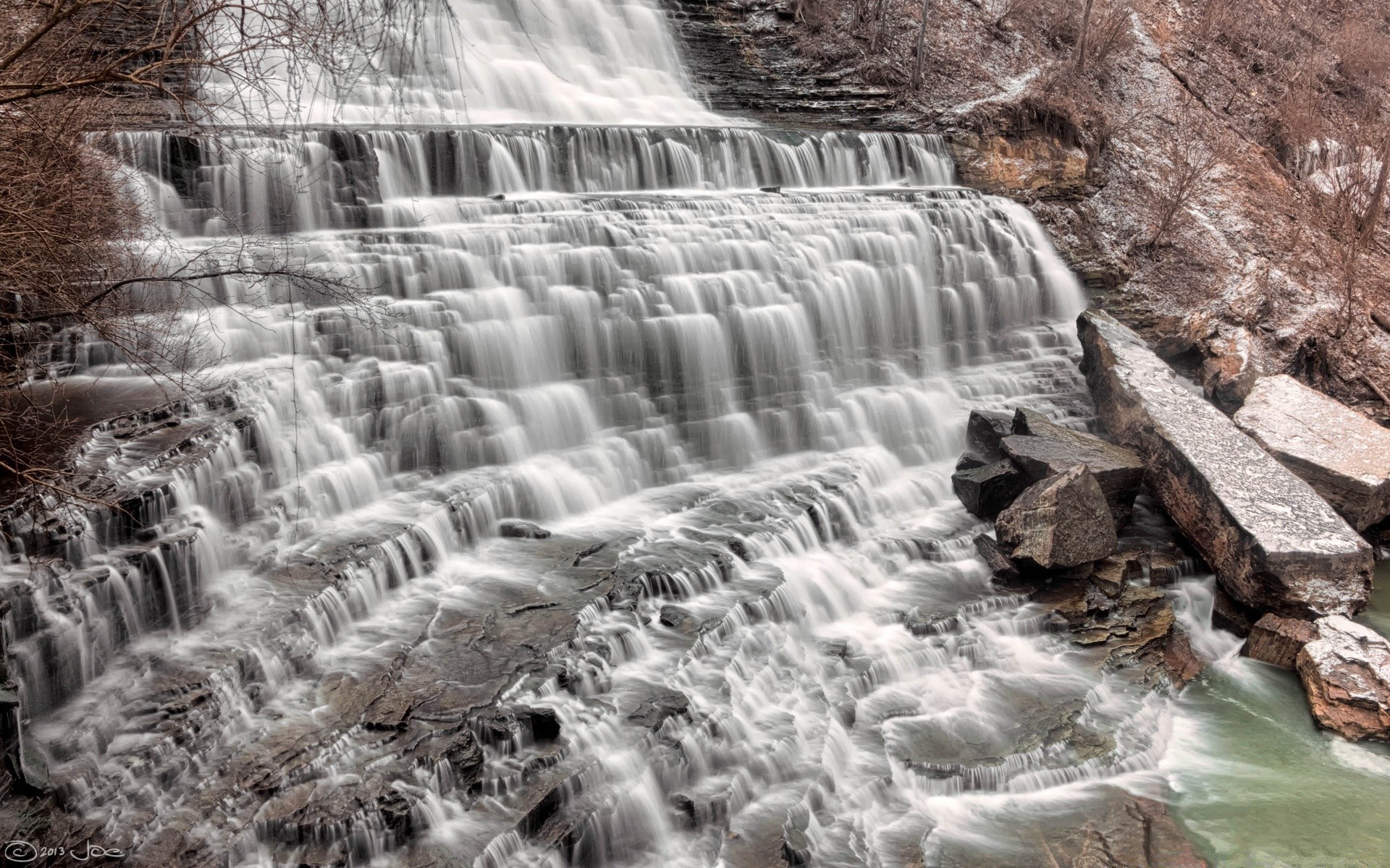 Felsbrocken spiegeln sich im dunklen Wasser wider