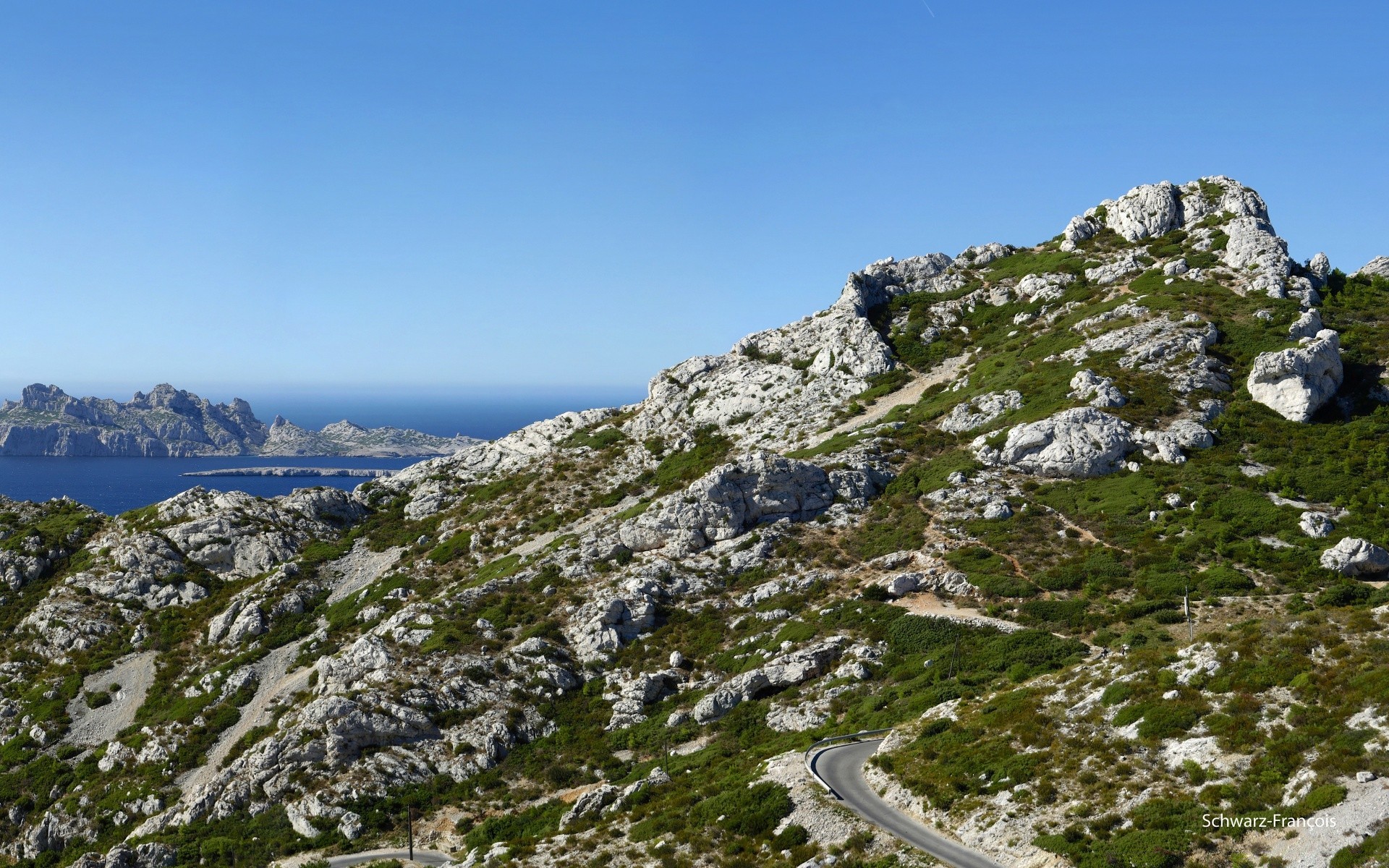 Ein Leopard jagt seine Beute von einem Stein auf einem hohen Felsen