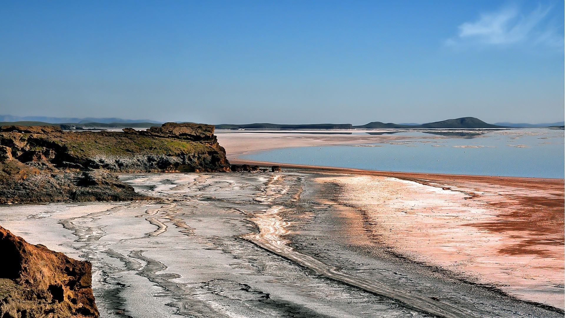Ein Fluss inmitten einer Schlucht unter blauem Himmel