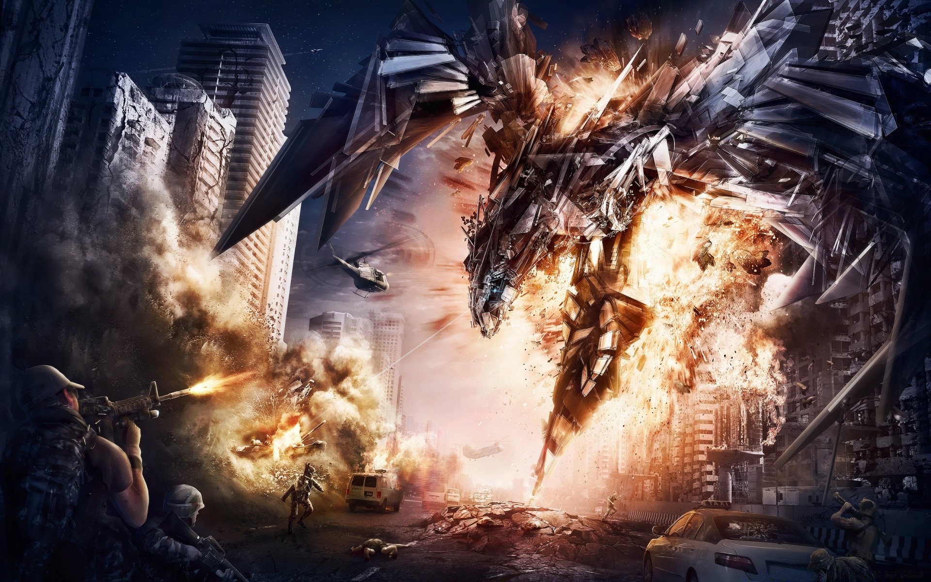 Ein männlicher Krieger vor dem Hintergrund von Feuer und Rauch. Fantasy-Bild auf dunklem Hintergrund