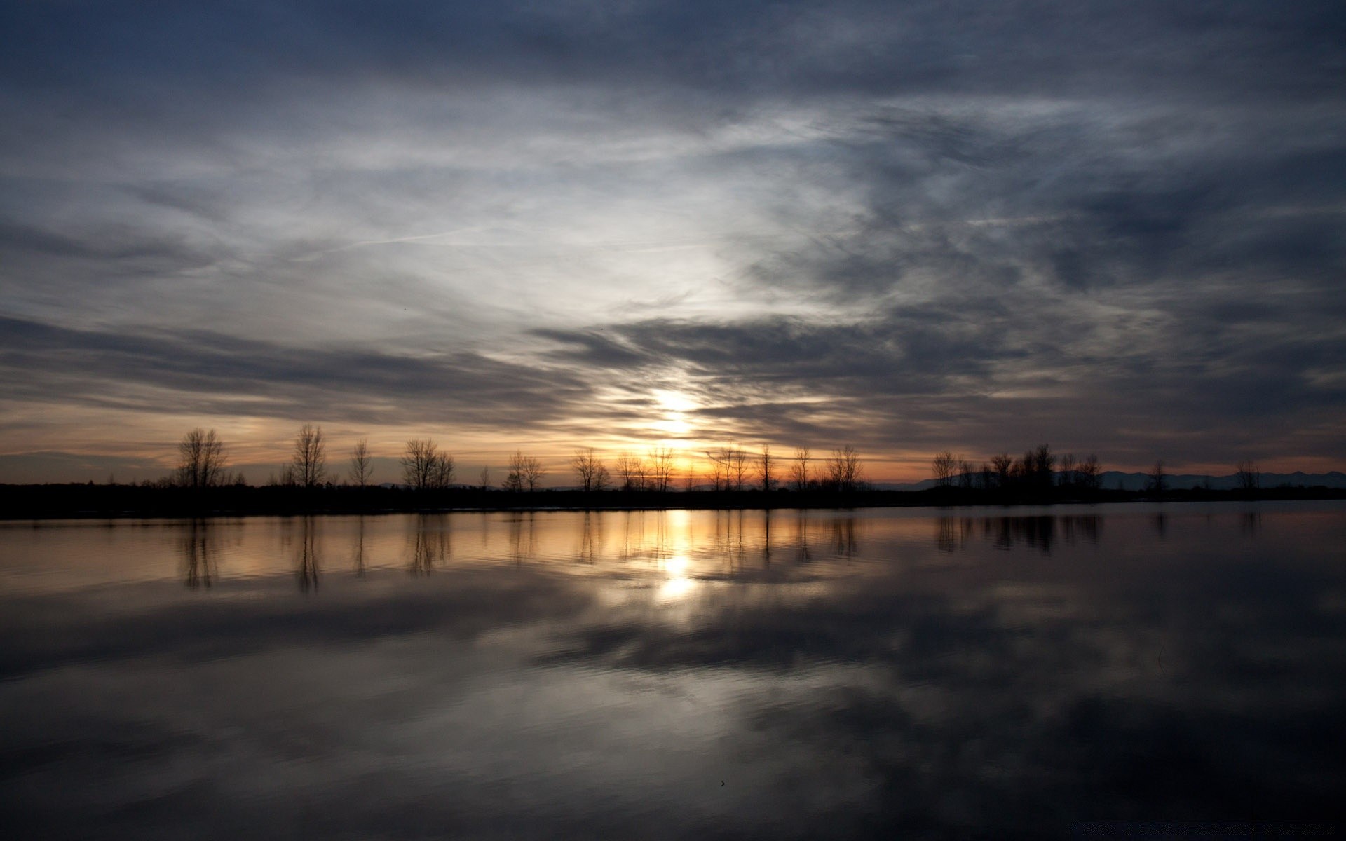 Seltsamer Sonnenuntergang über dem See