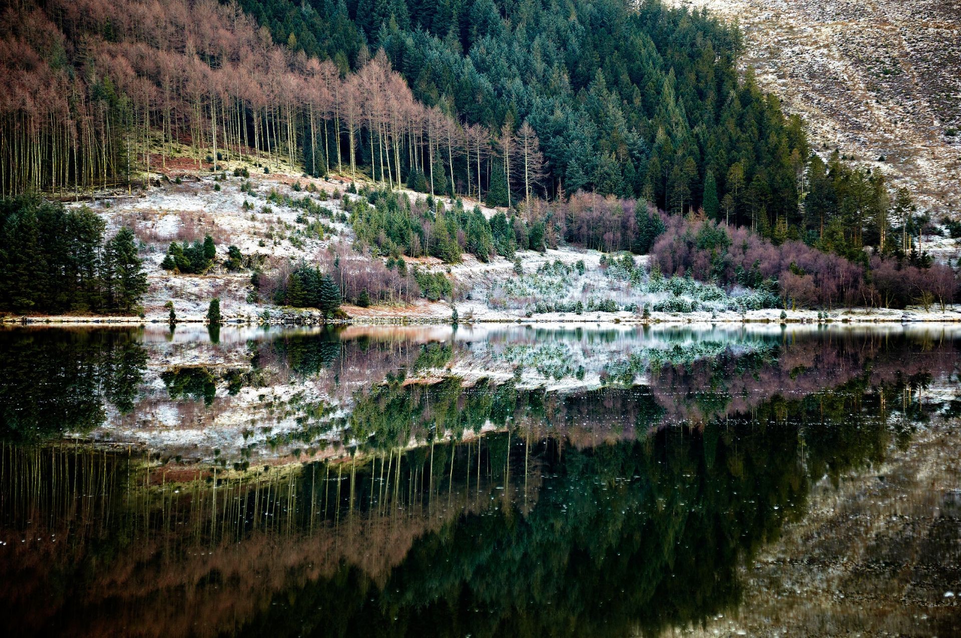 Schöner Sonnenuntergang in der Reflexion des Sees