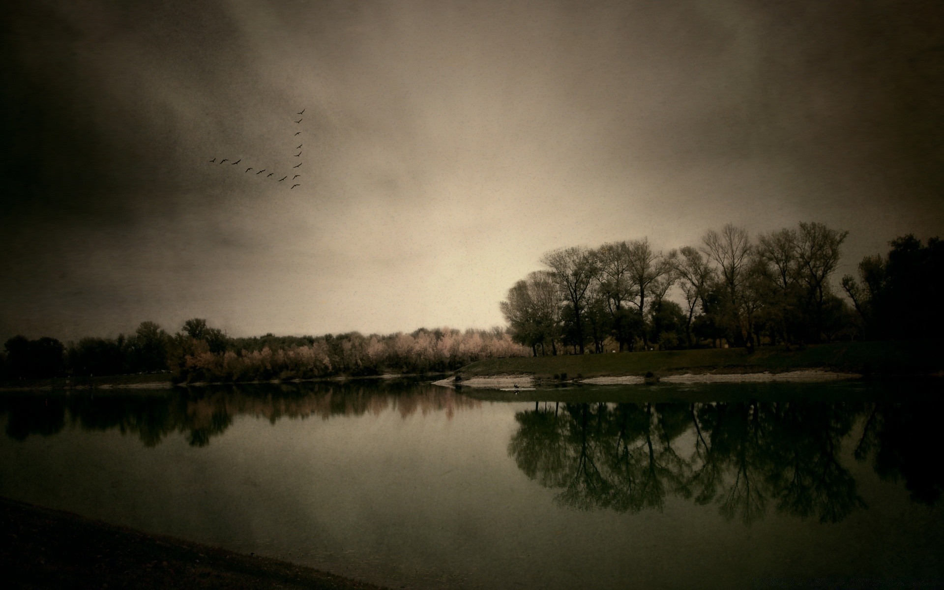 Landschaft mit der Reflexion von Bäumen im Wasser
