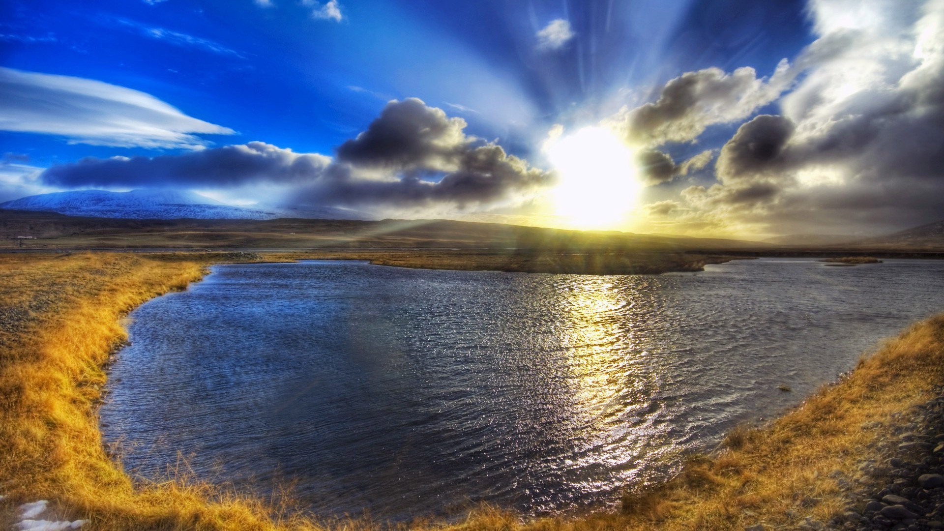 Magischer Sonnenuntergang in der Reflexion des Sees