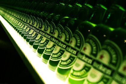 Eine Reihe von Bierflaschen im Regal