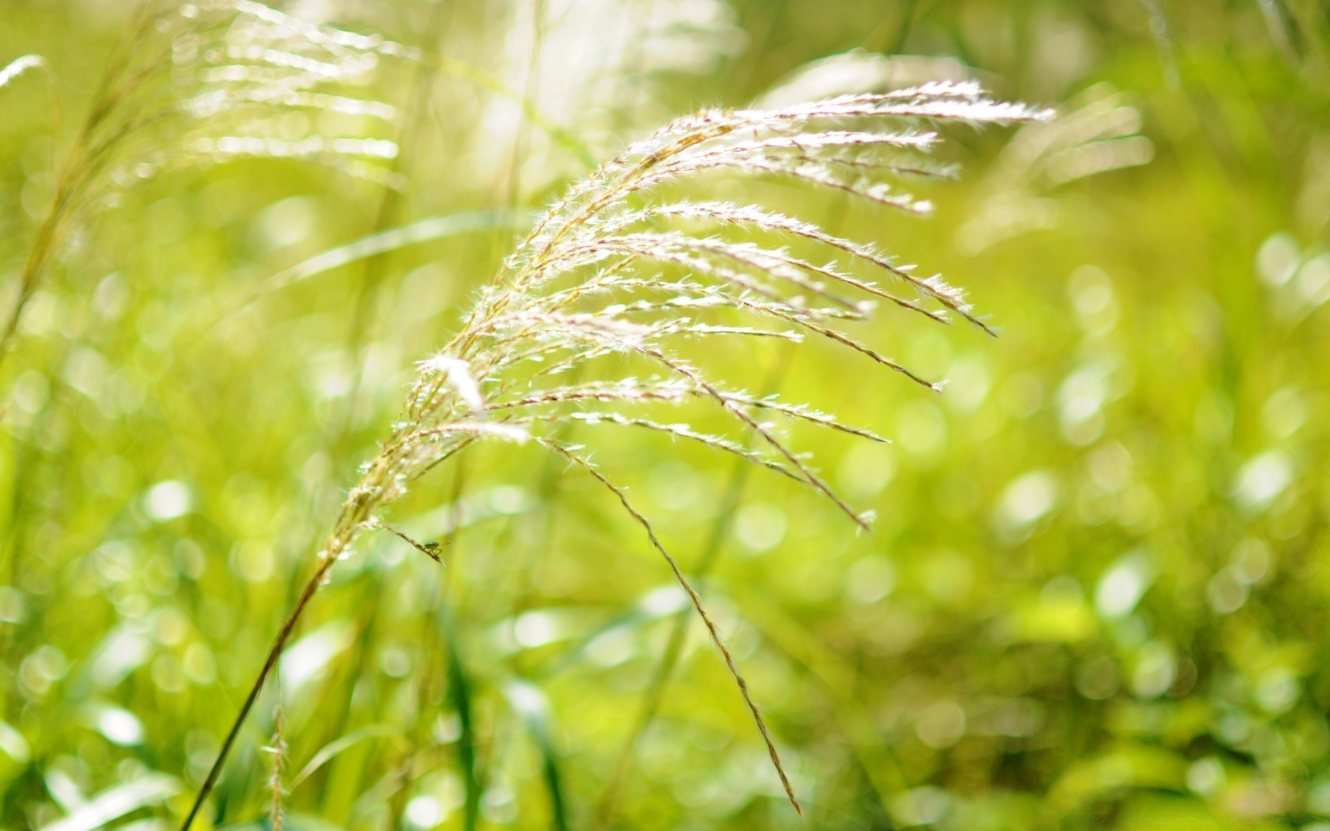 Der Tau ist an den Stielen der Segge kaum sichtbar
