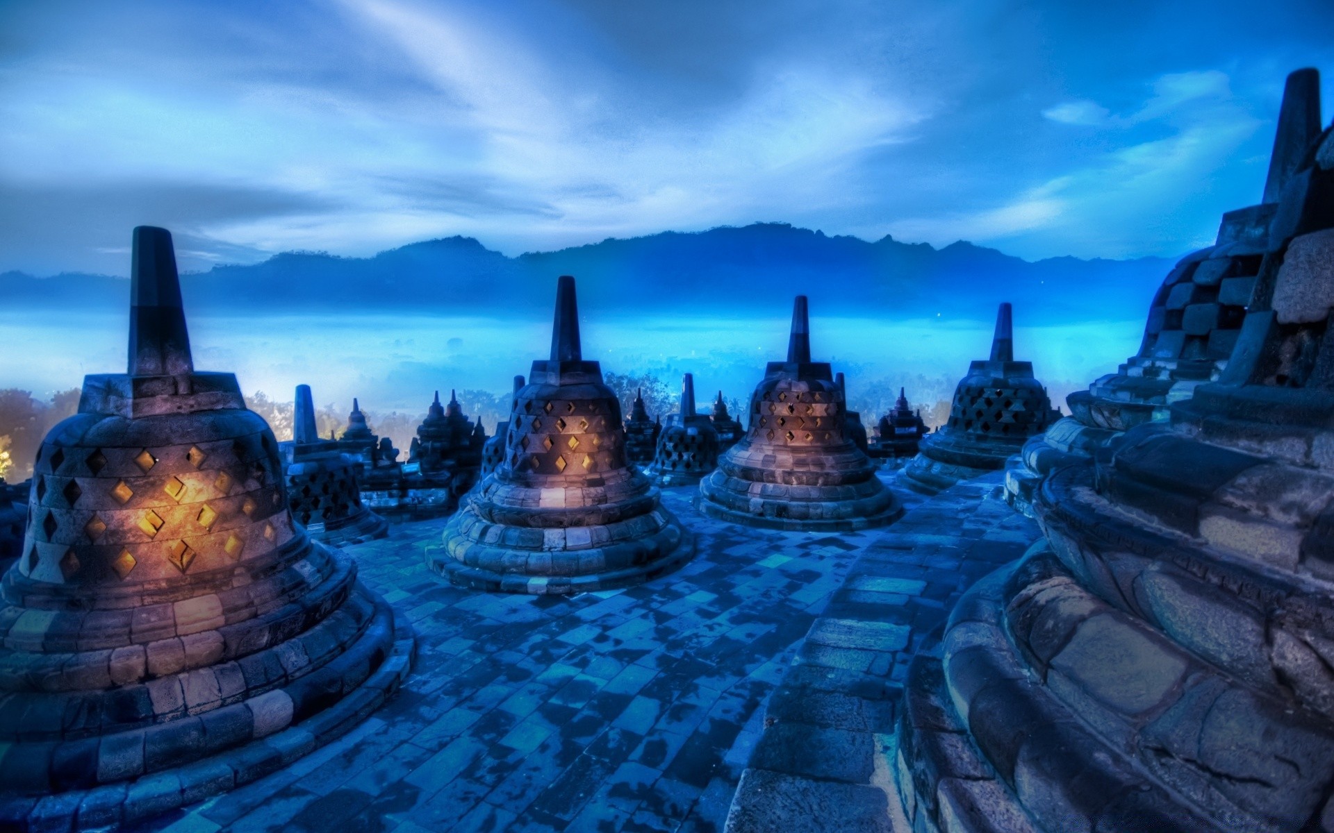 Ein Schloss im Dunkeln und ein bewölkter Himmel