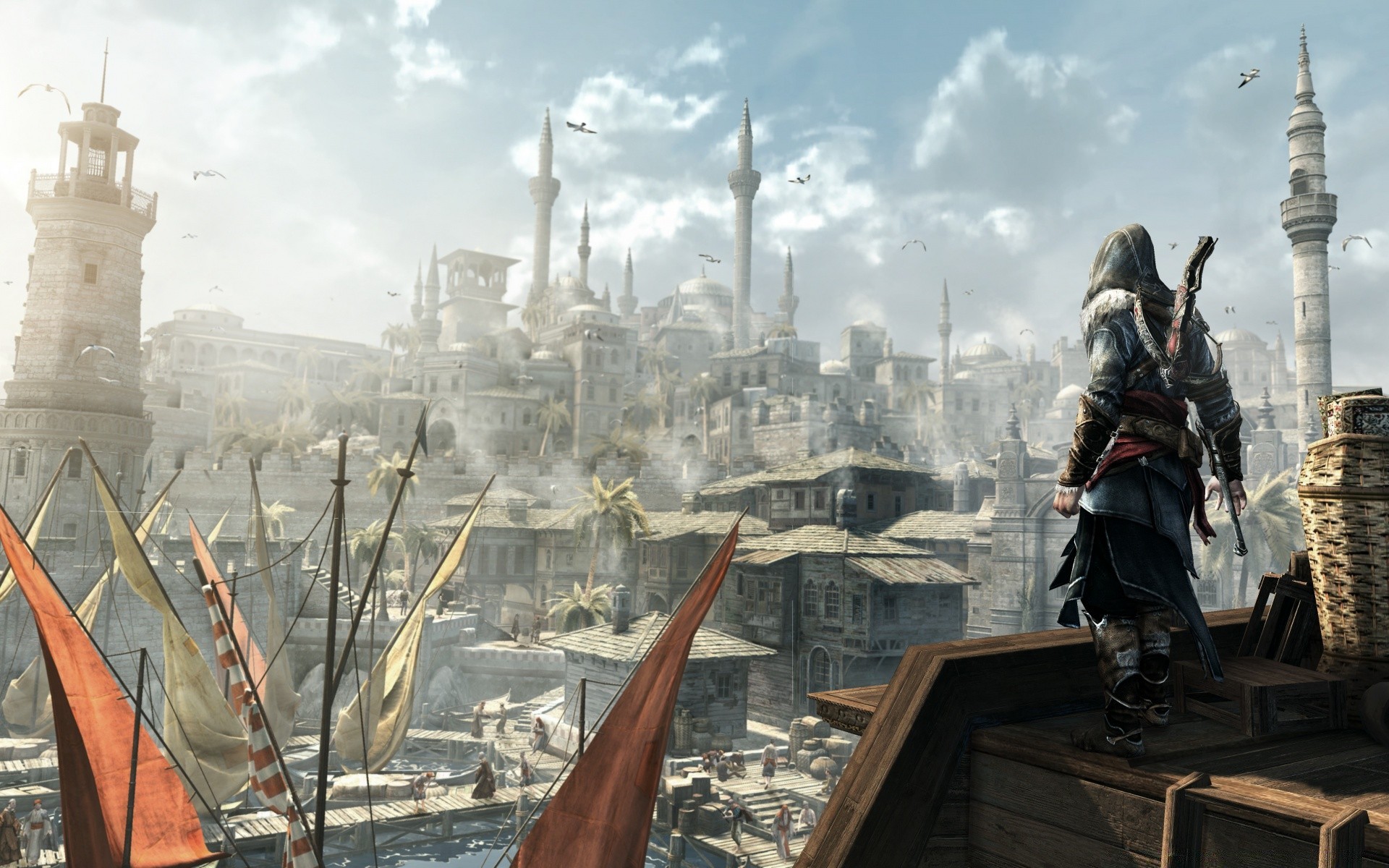 Assassin's creed reist über die Dächer von Häusern