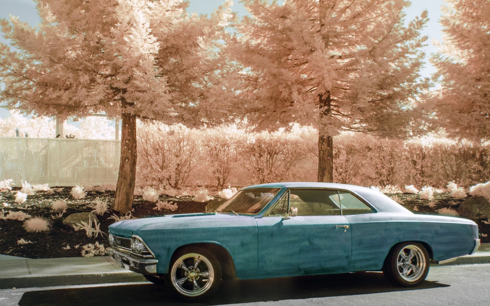 Grauer Retro-Dodge auf verschwommenem Hintergrund