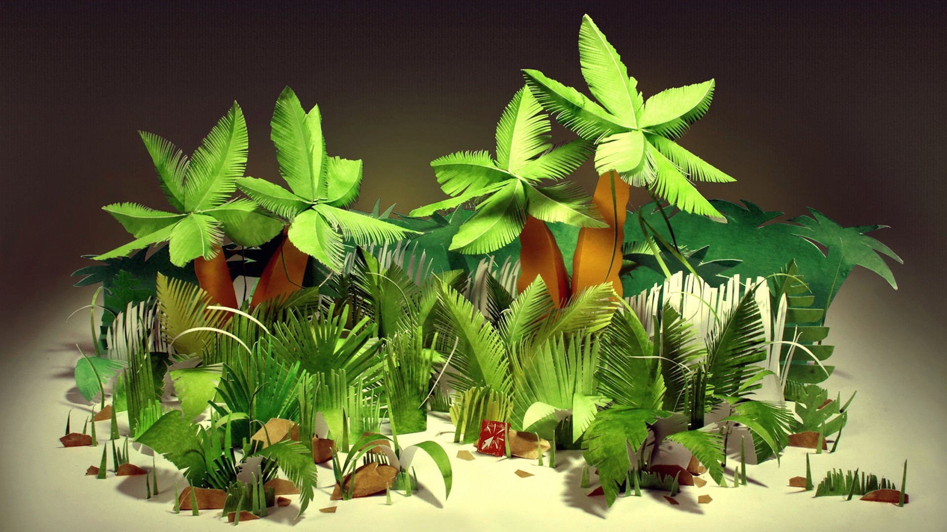 Papierhandwerk in form einer tropischen landschaftPapierhandwerk in Form einer tropischen Landschaft