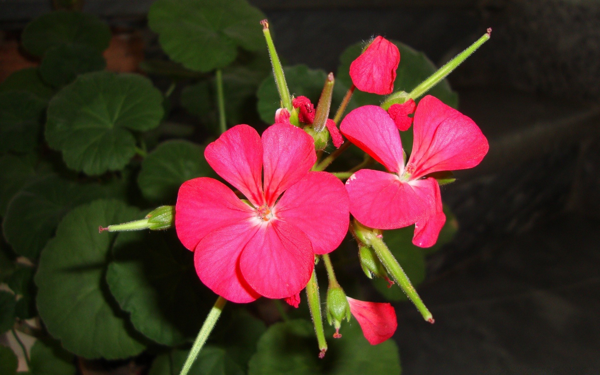 Blumen mit rosa Blättern auf einem dunklen Grünhintergrund